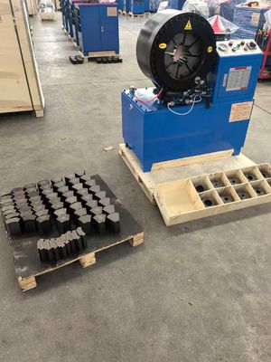 1/4 に 3 インチ電気高容量 200 個/H 青色電気ショートモデルボタンシステム油圧ホース圧着機 6-76 ミリメートル圧着範囲